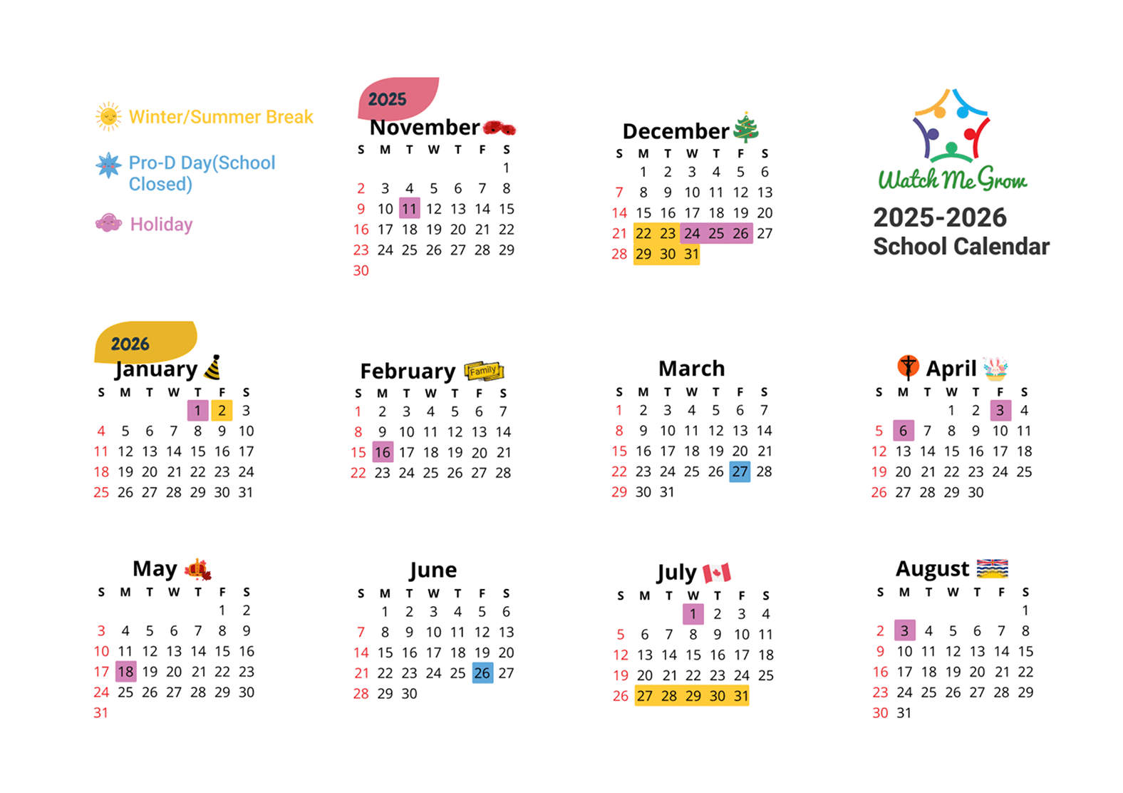 Our 2026 Calendar gives families a clear overview of key dates, holidays, and special events throughout the year. It helps families stay informed, plan, and feel connected to what’s happening in our community.